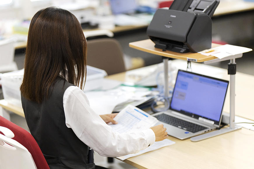 報告書の仕分け、検体(血液)の回収、処理をしています。